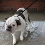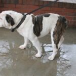 Right now, he is in the comfort of Riverside Animal Hospital…no more rainy nights for him. After a good scrubbing down and several days of antibiotics, we’ll know more about what we will have to do about the tail and tail pocket. He has a very serious face but is a very sweet boy who loves to give kisses and gets along with other dogs.