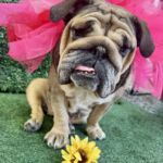 7/7/25 – Please welcome Miss Moneypenny! Miss Money penny was picked up as a stray and turned over to us by animal control. She was spayed while at the shelter but needs airway and entropion surgery. Once her respiratory infection clears up we will move forward with surgery. She has been diagnosed with dry eye and will be on prescription eye drops for life.