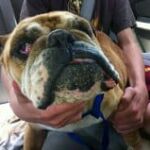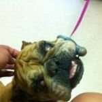 May 6, 2015: In the spring of 2012 an independent rescuer in Louisiana sent out a Facebook plea for anyone/ rescue who could help with an English Bulldog, very sick, cherry eyes, emaciated, broken jaw, uterine prolapse and appears to have just delivered a litter. She couldn’t eat or drink because her jaw was so severely damaged. She was lying on the cement floor of a rural Lousiana shelter with no comfort. Tasha was a small rescuer who didn’t know much about bulldogs and had little ope…rating funds and couldn’t take this girl on herself. Only one group responded….GEBR. Tasha pulled her and transported her to her vet for care. There we found that “Angel” was too unstable to be flown to Atlanta, so until she was stable, all care would be performed remotely and Gosh, that vet was one of the most talented vets we’ve come across. She underwent spay, had her jaw fixed with bone grafts with an external fixature placed. She underwent laser and Ultrasound therapy almost daily. All this while Tasha was raising a litter of pups, treating another dog with lymphoma and taking care of her own rescue.