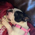 1/4/22 – Bijou had her surgery today and all went well. She was spayed, had two cherry eye tacked down, had her teeth cleaned, had her palate shortened, had her saccules removed and had her nares widened. She will see the specialist soon for a consultation for TECA surgery.
