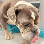 6/11/25 – Bloom had surgery today and went well. She was spayed, had her teeth cleaned had 11 teeth extracted, had her palate shortened, her tonsils removed, her nares widened, and had entropion surgery.