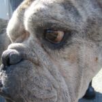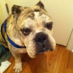 Update 1/19/12: About 6 weeks ago, he was an emaciated, forlorn boy who had given up. His eyes were vacant and he was very aloof.  Bob has gained 10 pounds, the sparkle is back in his eyes and he was interested in what the other bulldogs were doing at the meet up. Bob went in to have his heartworm treatment this morning. He had the first treatment today and if he is stable overnight, will have the second tomorrow, then 3 weeks of crate rest (at the vet), no visitors, no excitement.