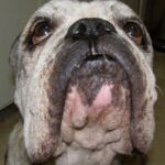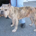 Update 1/19/12: About 6 weeks ago, he was an emaciated, forlorn boy who had given up. His eyes were vacant and he was very aloof. Bob has gained 10 pounds, the sparkle is back in his eyes and he was interested in what the other bulldogs were doing at the meet up. Bob went in to have his heartworm treatment this morning. He had the first treatment today and if he is stable overnight, will have the second tomorrow, then 3 weeks of crate rest (at the vet), no visitors, no excitement.
