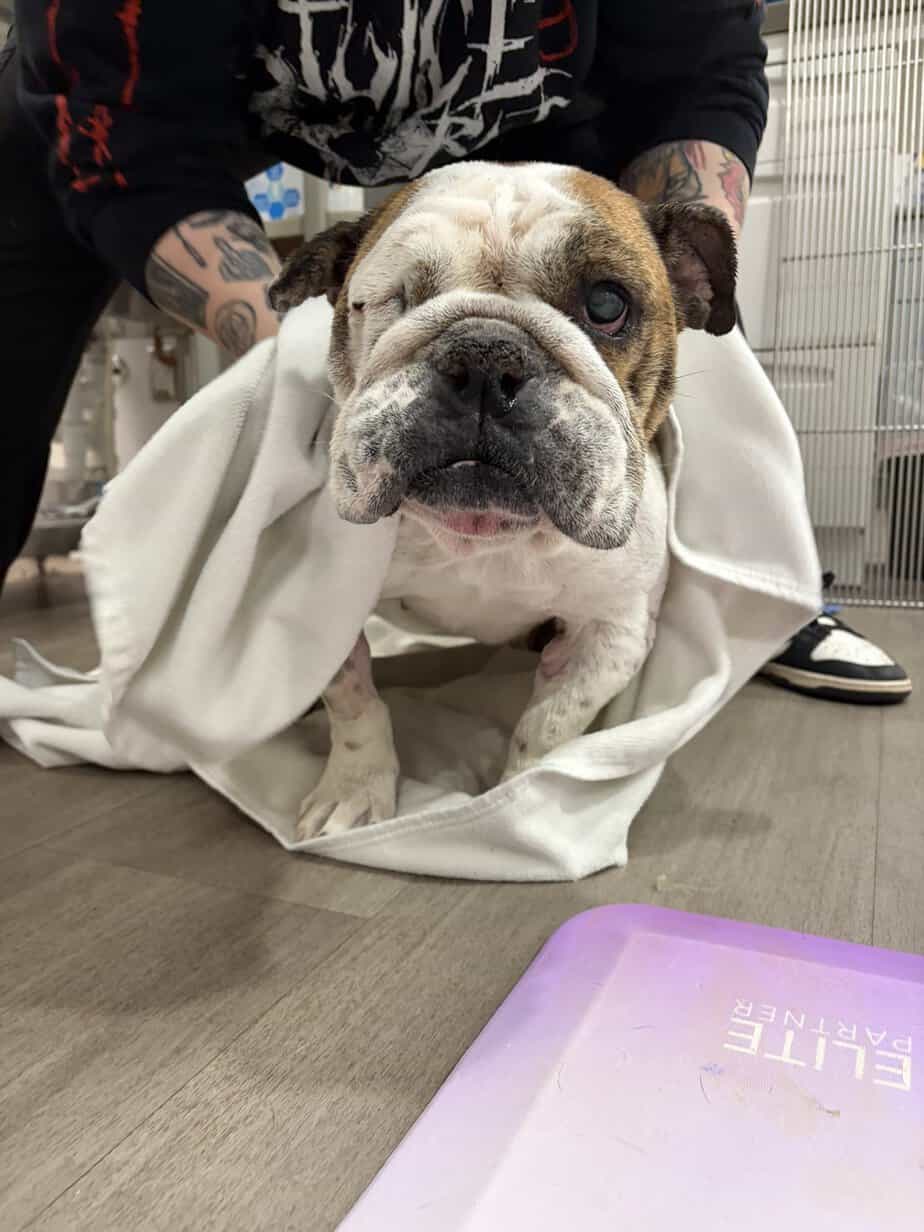 2/18 – Brielle has surgery today and all went well but she was under a bit longer thnn we would have liked because of her eye removal so she will need to have a second surgery in a few weeks. Today she had her eye removed, her nates widened, her teeth cleaned, two teeth removed and entropion on her right left eye lids.