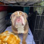 2/27/23 – Bruce Oliver had his second surgery today and all went well. He had his palate shortened, his tonsils removed, and his nares widened. We are having his thyroid tested for possible hypothyroidism. His skin is looking good, and his tail pocket infection has cleared up.