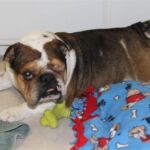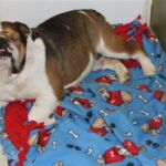 Update 4/16/13: Brutus was able to leave Dr Rush’s today; he went to Stepany’s house to recover. He is a bit swollen but the swelling will go down over the next few days. He is enjoying some relaxing time on his Bully Blanket.
