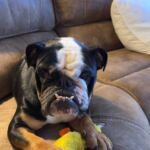 11/20/25 – Please welcome Bucky! Bucky’s most recent owner got him from someone giving him away on Next Door. His most recent owner realized owning an English Bulldog is bit harder than they expected so they reached out to us to take him in. He is now up to date on vaccines, and we are treating an ear infection. He ha been diagnosed with dry eye and will need prescription eye drops for life to treat this.