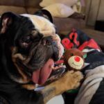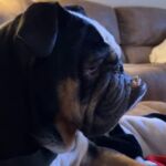 Dislikes? He doesn’t like his eyedrops, but is starting to handle it better. He doesn’t seem to mind having his face folds wiped out but anything else on his face he’s a little cautious. He doesn’t like for people to take toys or bones from him, but he doesn’t seem to mind when you’re around his food or water bowls.