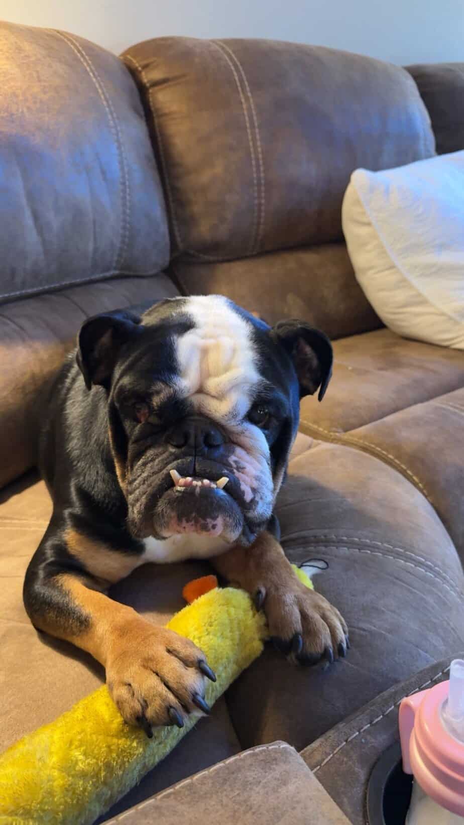 11/20/25 – Please welcome Bucky! Bucky’s most recent owner got him from someone giving him away on Next Door. His most recent owner realized owning an English Bulldog is bit harder than they expected so they reached out to us to take him in. He is now up to date on vaccines, and we are treating an ear infection. He ha been diagnosed with dry eye and will need prescription eye drops for life to treat this.