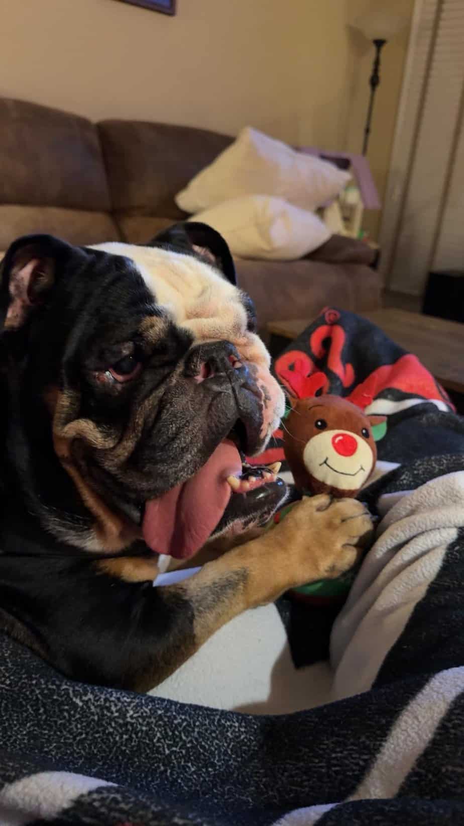12/10/25 – Bucky had surgery today and all went well. He had his palate shortened, his left tonsil removed, his nares widened, cherry eye on his right eye tacked down, his teeth cleaned, two teeth extracted and entropion on all four lids (with extensive repair on the right lower lid)