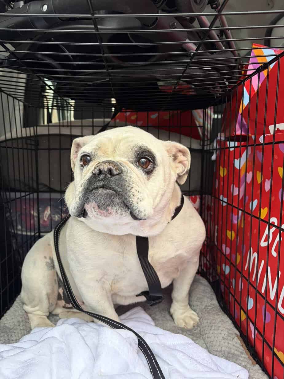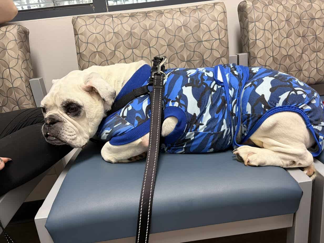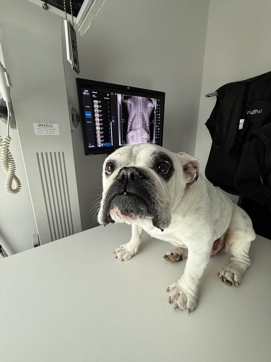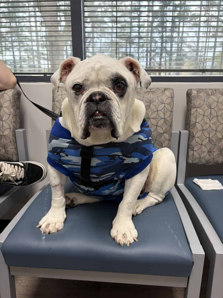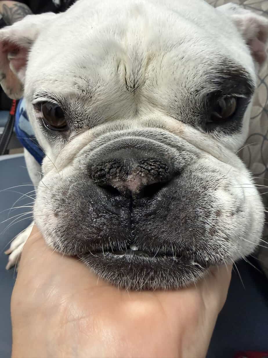 2/19/26 – Capone had surgery today and all went well. He had two masses removed, his palate shortened, his nares widened and his teeth cleaned.