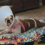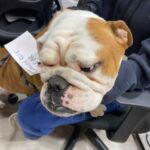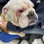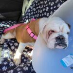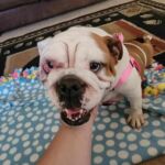 9/12/22 – Daisy Quinn had surgery today and all went well! She was spayed, she had a mass from her abdomen removed, she had her palate shortened, her saccules removed, her nares widened, her teeth cleaned and entropion surgery on her lower right eye lid. We are also treating her for hookworms.
