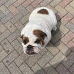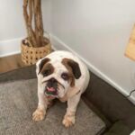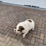 3/29/22 – Please welcome Demi Glaze! Demi Glaze was purchased a year ago by a breeder from another breeder. She had two litters of puppies since then but the third time she was unable to get pregnant, so the breeder turned her over to us to place her in a home. She is extremely overweight and on a strict weight loss plan. She has been diagnosed with dry eye and will be on prescription eye drops for life.