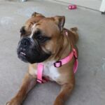 She doesn’t mind having her ears or face cleaned at all, loves attention (but does not care for the smell of Listerine). She even seems ok when you squish her nose. She has not chewed up any of her foster mom’s belongings or her bully blanket; she only chews her toys. Her toenails will scratch up the hard wood floors and car interior so a carrier for the car is a good idea. Or she would prefer to lay her head in your lap when you are driving.