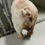 Update 9/19/13: Donte’s foster mom found 2 skin lesions on Donte’s shoulder about 2 weeks ago. During examination by her personal vet, another was found on his head. He was transported to Riverside for surgery. While undergoing examination under anesthesia for removal of the 3 lesions, another was found on his chest bone. All 4 lesions were removed: 2 were benign, the third was a low grade mast cell tumor but the 4th (on his chest bone) is a grade 3 mast cell tumor with positive deep margins(high grade cancer). Chest x-ray and abdominal ultrasound were negative for additional disease. He will be evaluated by the Oncologists at UGA on Wednesday. This is not something we can cure ; (