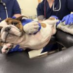 Francisco, a 2-month-old male intact English Bulldog, was presented to the UGA Cardiology Service on 1/16/25 as a referral from his primary care veterinarian following auscultation of a grade V/VI heart murmur. On physical examination today, a grade V/VI basilar systolic murmur (R>L) was heard, and an echocardiogram was recommended to further evaluate for a structural abnormality in Francisco’s heart.