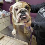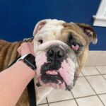 10/10/23 – Goose had surgery today and all went well! He was neutered, had his cherry eye tacked down, had his palate shortened, his tonsils removed, his nares widened, and his teeth cleaned. He has been diagnosed with dry eye and will need eye drops for life.