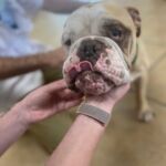 5/13/21 – Gordo has surgery today and went well; he had not issues under anesthesia. He was neutered, had his palate shortened, saccules removed, nares widened and had two masses removed. We are sending the masses off for biopsy. He also needs to have entropion surgery on both eyes but we need to do that another time. He was under anesthesia for a long time today and we did not want to take any chances with him being under any longer. He will have this surgery in a few weeks. Once he undergoes his second surgery he will begin his heartworm treatment. He has a long road ahead of him but we are committed to getting him all the help he needs to live a long healthy life.