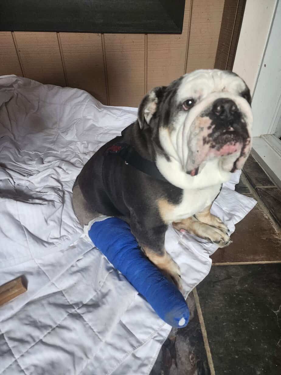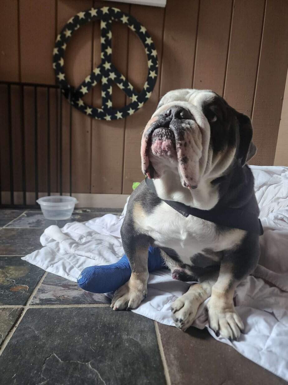 10/1/25 – Kassius is doing well now but he struggled for a while after surgery. He ended up getting an infection so his recovery took a bit longer then expected. He is doing well with his at home therapy and medications. He is enjoying playing with the young male dog in his foster home!