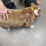 1/31/22 – Please welcome Lady Tubz! Lady’s owner was moving out of the country, so he asked to find her a new family. We are treating her for a UTI. She appears to have some scarring on her skin from previous skin infections.