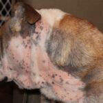 Update 5/30/13: Leila’s biopsy came back and she has Inflammatory Bowel Disease. She is not absorbing any nutrients from her food because her intestines are inflamed and irritated. She has lost weight and is down to 36 pounds. We started her on prednisone yesterday; this should decrease the inflammation. We will weigh her and consult with Dr Lungs in two weeks. If she is starting to gain weigh…t then we will lower her dose of prednisone at that time. She may need to stay on it for a few months but we are hoping not. She also started another antibiotic for her Staph infection. Her skin is already looking, feeling and smelling better. She is getting baths every other day. She is not a fan but it is helping so we need to keep it up. A big thank you to her foster parents Becky and Colt for staying on top of the baths and all of her meds and vet visits! She goes back to see Dr Griffies for a skin check up on June 14th.