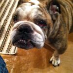 11/12/12: Meet Mia, a six year old owner surrender to a rural high kill shelter. The owners dropped Mia off this afternoon stating that they couldn’t afford her any longer and she had recently snapped at the children. Because she was an owner surrender to this small shelter, plans were to put her to sleep within hours. By a stroke of luck, her photo was posted on the shelters volunteer website. Fearing that she would indeed be put down, Joyce Keeton with English Bulldog Rescue of Georgia swooped in a claimed her, eventhough EBRG didn’t have room for her. At about the same time we were also made aware of Mia by one of our concerned facebook friends. We immediately contacted the shelter. By working together, we were able to get this sweet girl to safety with GEBR. Thank you for your help Cheryl and Joyce.