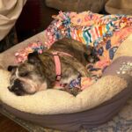 11/23/22 – Millie Pete has surgery today and all went well! The vet could not find a uterus so she was obviously spayed aloready. She had her teeth cleaned with five teeth extracted, she had her palate shortened, her saccules removed and her tail amputated. She will see the vet again in two weeks to have her stitches removed and have her ear infections checked.