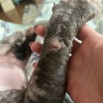 9/23/24 – Please welcome Moonpie! Moonpie was picked up as a stray and turned over to us by the shelter. She has a pretty bad skin infection and mange, but once that clears up we will move forward with surgery.