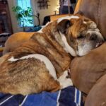 6/28/22 – Myrtle Grace had surgery today and all went well. She was spayed, had her palate shortened, had her saccules removed, had her nares widened, had her teeth cleaned and had her cherry eye tacked down. Unfortinelty there wasn’t enough time under that anesthesia to safely do her entropion surgery so she will have another surgery in a few weeks.