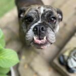 5/15/25: Maddie is back in rescue and and is looking for a home where she can be the only dog. Unfortunately, she is no longer getting along with her bulldog brother, but gets along great with humans of all ages. She is very adaptable to new environments, loving, loyal, and sweet. She currently lives with a cat, and they do well together. Her next home needs to be one where she’s the only dog so that she can thrive in the best environment for her.