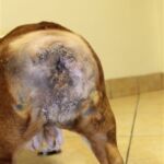 4/22/13: Please welcome Paisley. She is a four year old female, abandoned several months ago at a vets office where she sat languishing until a special new vet came to the office. Paisley is now safe in our care and resting at Dr. Rush’s office awaiting more thorough examination. On preliminary examination it appears that she has severe dry eye that is in serious need of treatment, possibly entropion (won’t be sure until we clear up the eyes a bit) and a severely infected tail. More information to come.