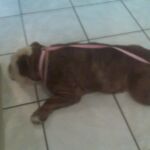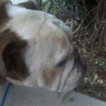 Petunia is a 3-4 year old stray from Madison County Animal Control. All we know is that Petunia was a stray found in a Trailer Park in the area. She was being fed by the neighborhood. After wandering into someone’s home, and seeing how thin she was getting, they called AC. Petunia is a sweet girl, starving for attention AND food. She was found with a collar and a 2009 rabies tag but no microchip. There are indications that she was well cared for in the past. She has a scar on one hind leg from knee surgery that may have been related to some type of trauma since there is scarring near the ankle. She also has no indication of C-Section, nor does her woohaa look like she free whelped any pups. She also appears well breed, with a beautiful bulldog face and build. Possibly stolen from her loving home, then dumped when the scum who stole her couldn’t care for her any longer? What is concerning is that her toes look splayed from living in a crate for a long period and callouses on her knees from living on cement. Think baby girl would have quite a story to tell if she could talk. Petunia is very dirty, very itchy and very thin right now. At the vet, she was excited to see other dogs with no indication of aggression. With humans, she cowers with fast movement and drops to the floor regularly for belly rubs. Even in her stressed state, I was able to touch every single part of her body without fear. Petunia will be spending sometime at the vet getting a complete evaluation, shots and spay after she has gained a little weight. Welcome BACK to the good life, Petunia!