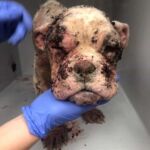 11/25/20: Please welcome Phoenix! He is an emergency pick up from Fulton County late in the day on the eve of Thanksgiving. He was picked up as a stray; he was bloody, covered in scabs, cold and scared. We rushed to the shelter to pick him up and get him to our vet for a check up and meds. He was immediate diagnosed with demodex mange and start treatment today. He will need daily medication, medicated baths and some time but we expect that he will be feeling great in now time and make a full recovery.