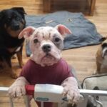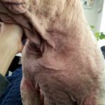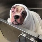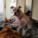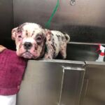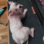 11/27/20: Phoenix is feeling a little better already! We were in such a hurry to get this guy into our care on Wednesday evening that we didn’t even notice he has a tail! He is not an English or French Bulldog; but maybe an American bulldog. But we are committed to helping him. He is only 33 pounds right now. Dr. Rush thinks he under a year old. He is scared but very sweet.