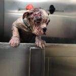 11/27/20: Phoenix is feeling a little better already! We were in such a hurry to get this guy into our care on Wednesday evening that we didn’t even notice he has a tail! He is not an English or French Bulldog; but maybe an American bulldog. But we are committed to helping him. He is only 33 pounds right now. Dr. Rush thinks he under a year old. He is scared but very sweet.