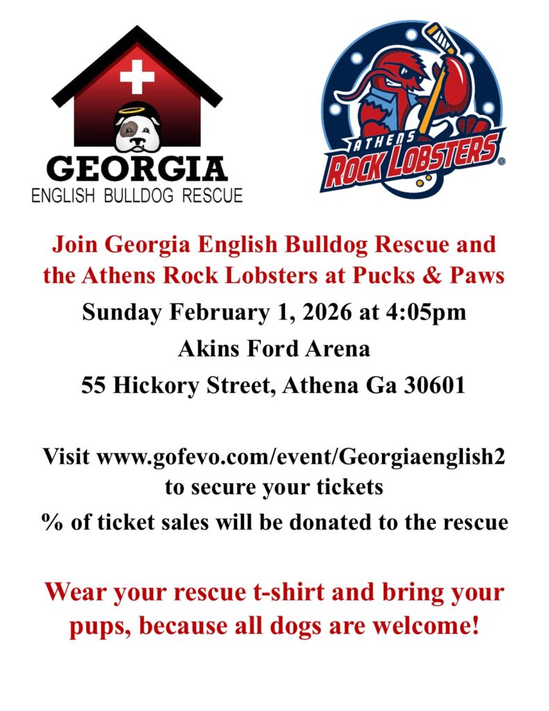 Join Georgia English Bulldog Rescue and the Athens Rock Lobsters at Pucks & Paws