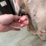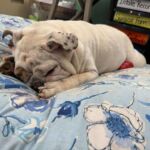 8/8/24 – Rosebud had surgery today and all went well. She was spayed, has the large mass removed from her vulva, had a mass removed from her back, she had her cherry eye tacked down, her palate shortened, her nares widened her teeth cleaned and four decaying teeth extracted.
