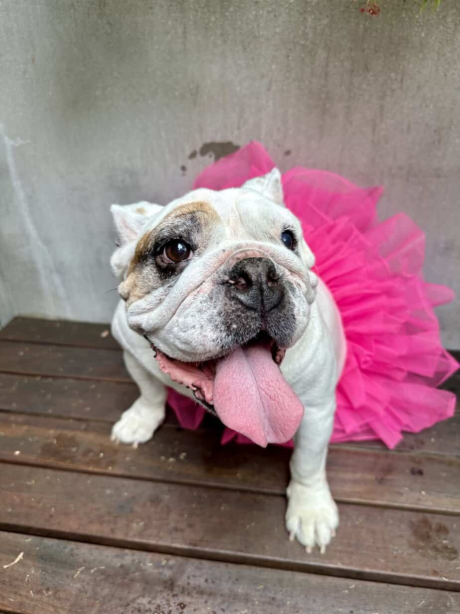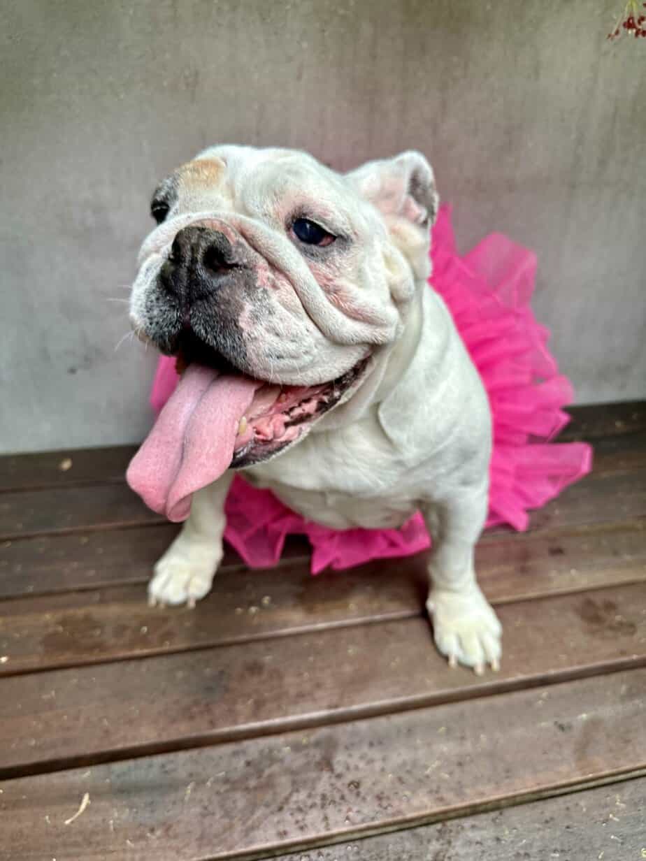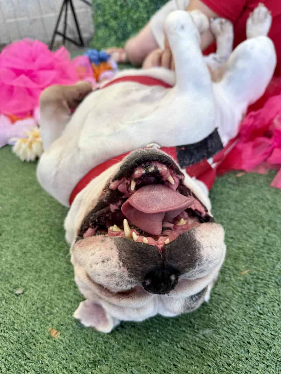 8/8/24 – Rosebud had surgery today and all went well. She was spayed, has the large mass removed from her vulva, had a mass removed from her back, she had her cherry eye tacked down, her palate shortened, her nares widened her teeth cleaned and four decaying teeth extracted.