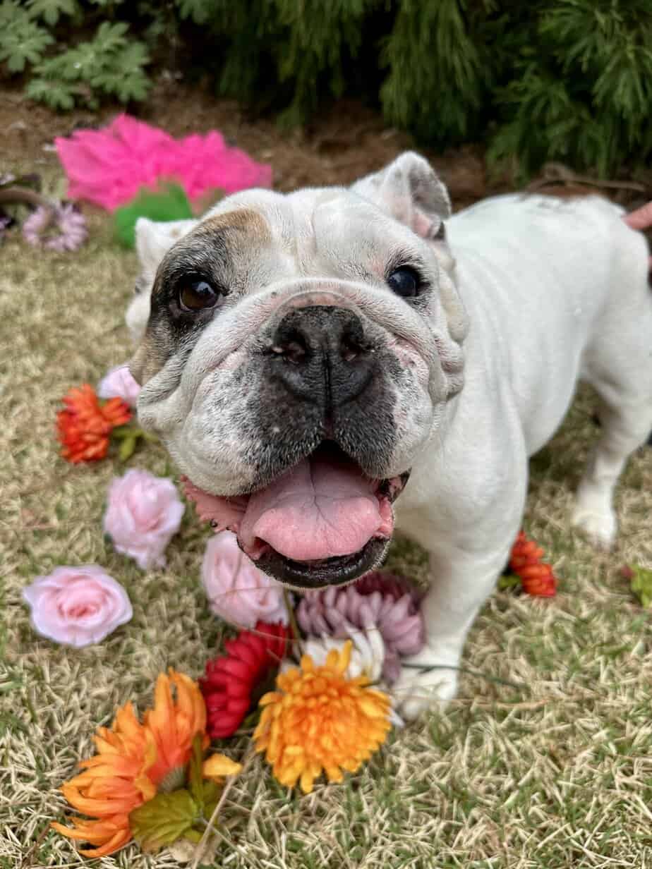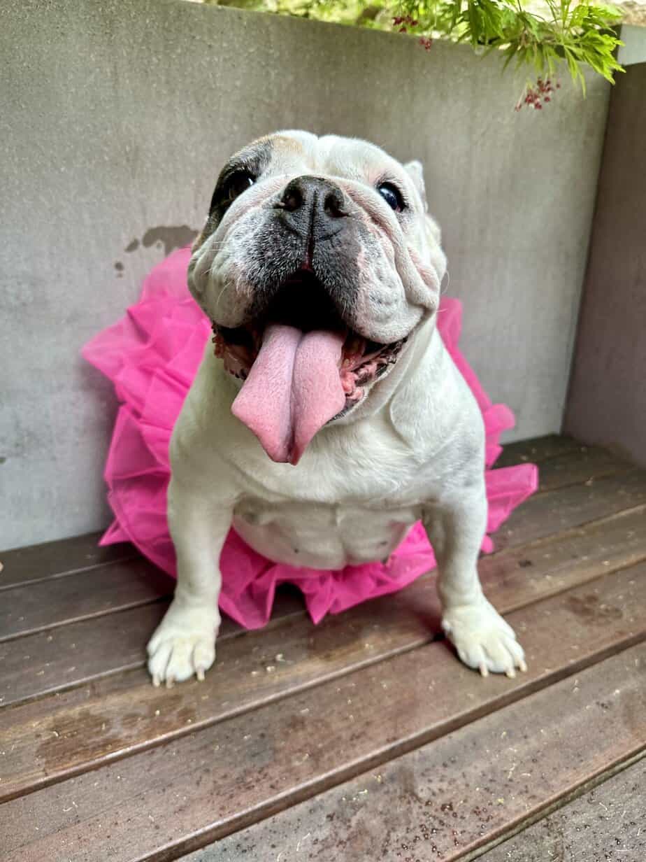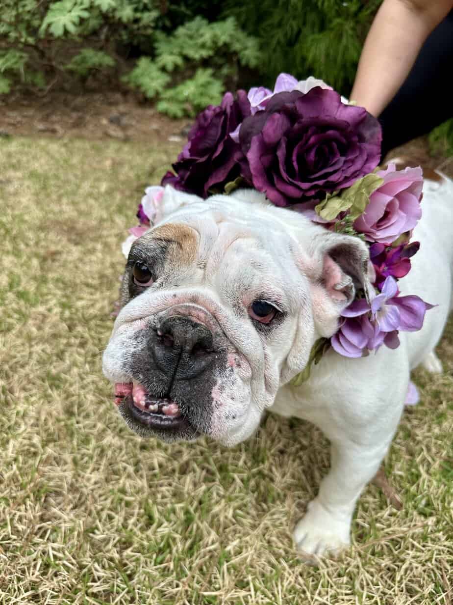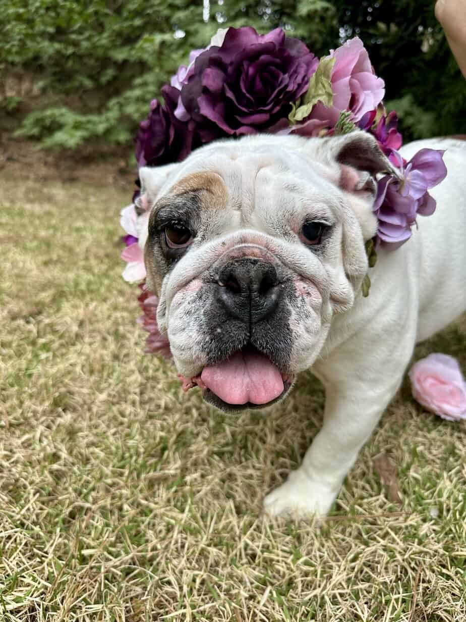 8/8/24 – Rosebud had surgery today and all went well. She was spayed, has the large mass removed from her vulva, had a mass removed from her back, she had her cherry eye tacked down, her palate shortened, her nares widened her teeth cleaned and four decaying teeth extracted.
