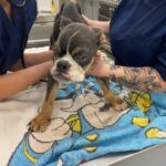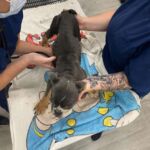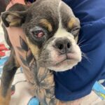 9/15/21 – Please welcome Ruckus! We headed to Fulton County Animal Control this morning to pick up this emaciated little fella with horrible eyes. He only weighs 10.8 pounds. At first glance we assumed he was a puppy but he has all of his adult teeth and we think he is about a year and half old. X rays looks like has bronchitis not pneumonia. We are going to start him on enrofloxacin, amoxiclav and temaril-p to help with mucus and inflammation. He is emancipated and dehydrated. We will start him on fluids for the dehydration. We will feed him many small meals throughout the day to not overwhelm his body with too much food too quickly. His right eye has a cherry eye and an injury. He left eye has an ulcer. We sent out blood work and urinalysis and should have those test results tomorrow. His fecal test and heartworm test are both negative. He is very sweet and just wants love and attention.