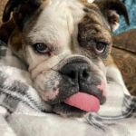 12/9/21 – Please welcome Sadie Jo! Sadie Jo has been loved and spoiled her entire life but unfortunately her owner is no longer able to provide the care she need and she has asked us to help find her a new home. She has dry eye and typical bulldog allergies that require apoquel.