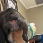 2/28/24 – Savannah Aiken’s rectum prolapsed as soon as we removed the purse string so we moved forward with a colopexy surgery. So now her colon is attached to her abdominal wall. We decided to spay her at this time too since it would have been difficult for us to remove her uterus at a later time. Over the next month we will wean her off of her medications and transition her onto regular dry dog food. We also discovered that she can not hear. Her foster mom is teaching her sign language for basic commands.