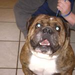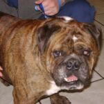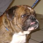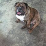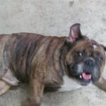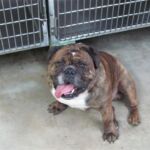 Shorty is a 3 year old owner-surrender to a shelter in coastal SC. Not sure of the reason for surrender, but I would be very hard-pressed to give up a dog as handsome and docile as Shorty. The shelter Shorty was in has a foster program, and he lived a short time with a foster parent with little English Bulldog experience. Three weeks into foster care Shorty felt comfortable enough to begin acting like a bulldog. Shorty nipped at his foster dad’s shoe when he didn’t want to do something he was instructed to do. This frightened the foster parent who therefore returned Shorty to the shelter. NOTE: I believe this “impish” behavior is common among bulldogs – more playful than aggressive.