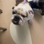 3/1/22 – Stafford had surgery today and all went well. He was neutered, had his palate shortened, his saccules removed, his nares widened, and his teeth cleaned. He will see the vet again in a few weeks to recheck his tail pocket infection, ear infection and to be sure his mange is cleared up. We have started him on medication for hypothyroid issues and he will continue these for life.