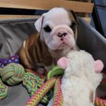 She was born 11/28/20 and only weighs 4 ounces ( a typical English bulldog weighs closer to 11 ounces when born). The next three days are critical to her survival. She will be tube fed every two hours for now.