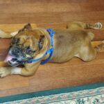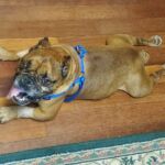 9/21/23 – Thunder had surgery today and all went well. He was neutered, had his palate shortened, his nares widened, his teeth removed a mass from his front leg removed.