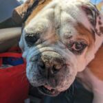6/9/23 – Please welcome Uno Dos Tres! Uno’s owner is ill and no longer able to care for him, so he turned him over to the shelter who turned him over to us. His eyes and skin appear to troubling him, he is not neutered, he has an prostate infection, and he is heartworm positive. It appears that he has been wearing a collar that was too tight which caused a skin infection on his neck. He has been diagnosed with dry eye so we started him on prescription eye drops. His tear production is very low and his vision is not perfect since his dry eye has not been treated. We will treat his skin infection first and then move forward with surgery then with fast kill heartworm treatment.