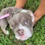 8/2/22 – Please welcome Violet! Violet was turned over to rescue by her breeder because of vision issues. She is three months old and otherwise in good health. She will see the eye specialist for evaluation in a few weeks.