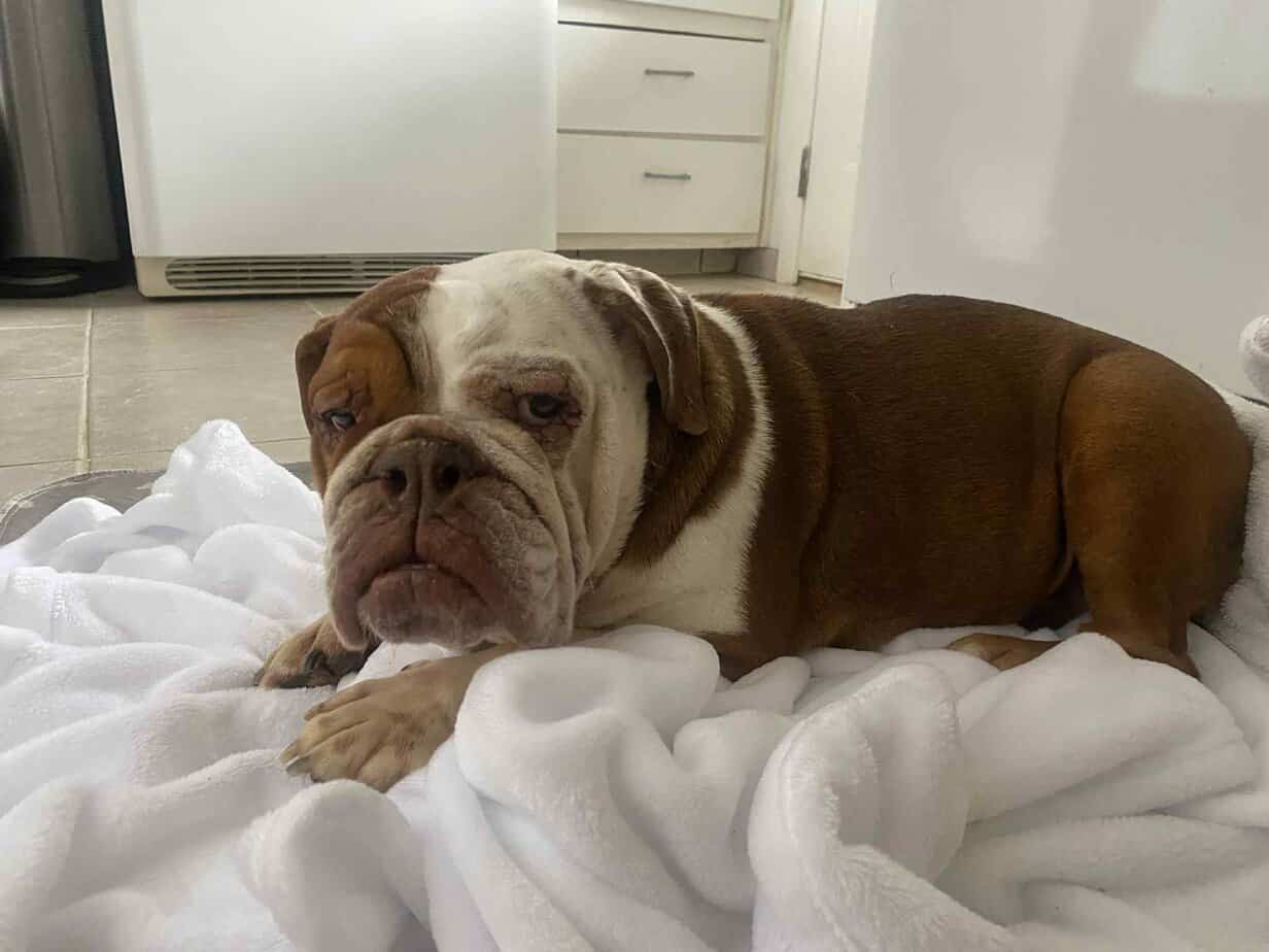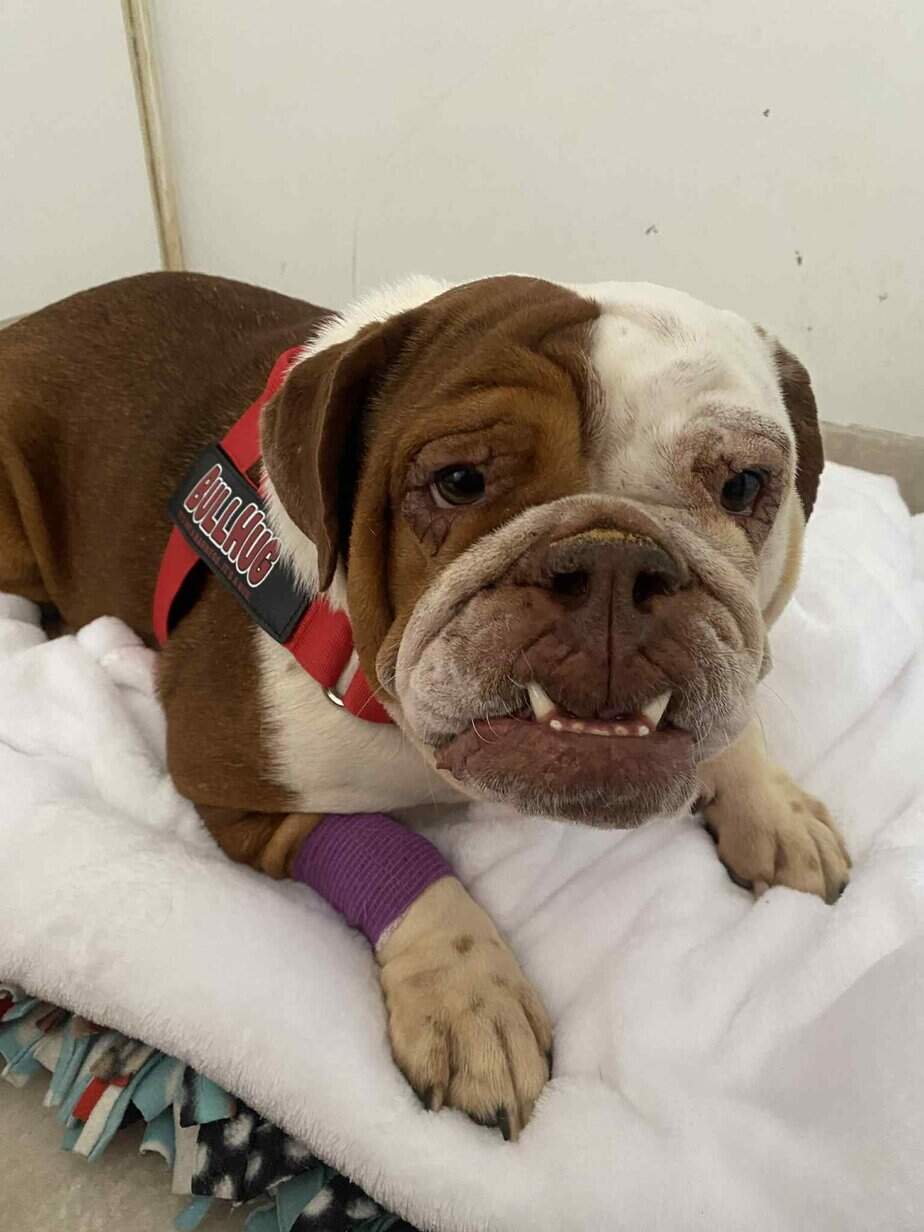 6/11/25 – Willoe Tree had surgery today and all went well! She was spayed, had her palate shortened, her nares widened, her tonsils removed, her teeth cleaned and entropion surgery.